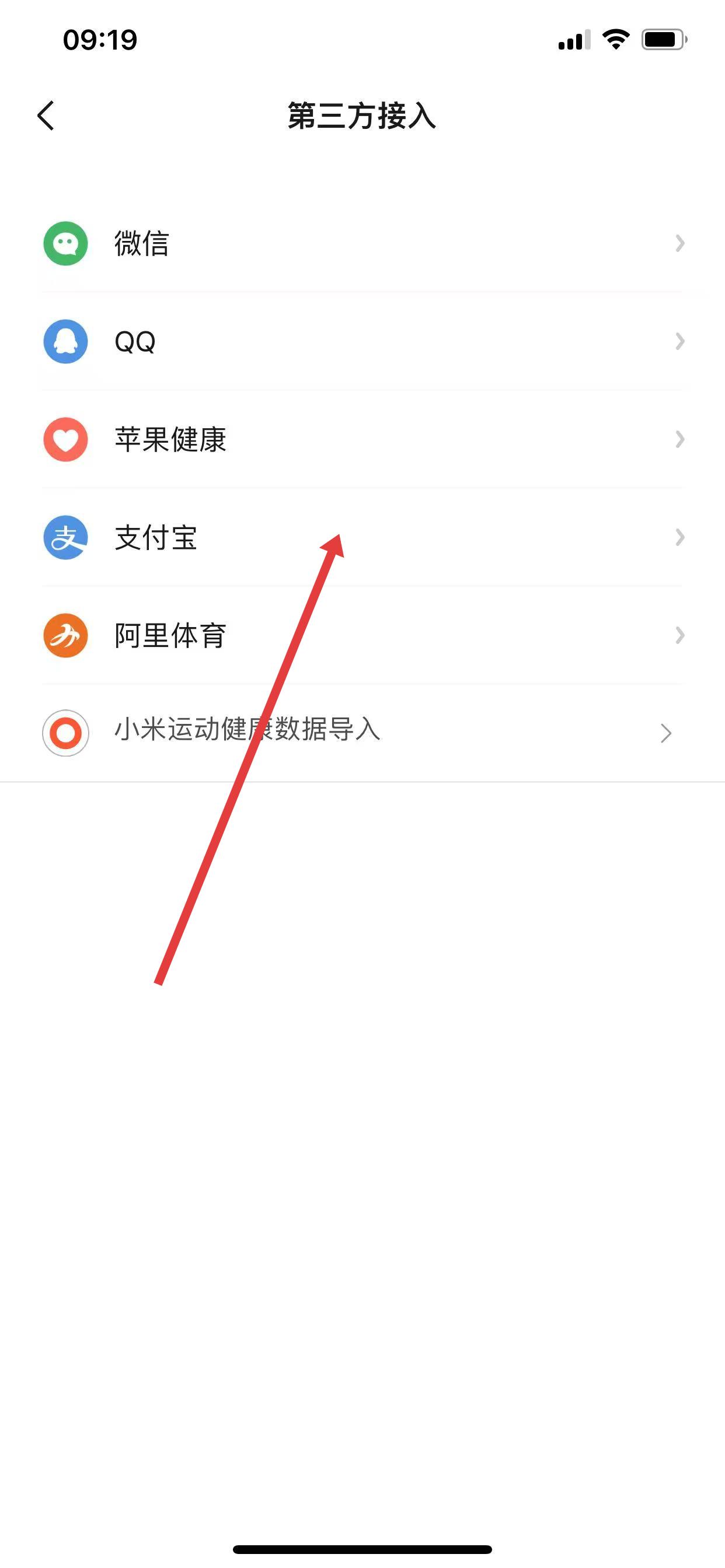 2、在第三方接入界面中,点击支付宝,进入绑定支付宝的页面。