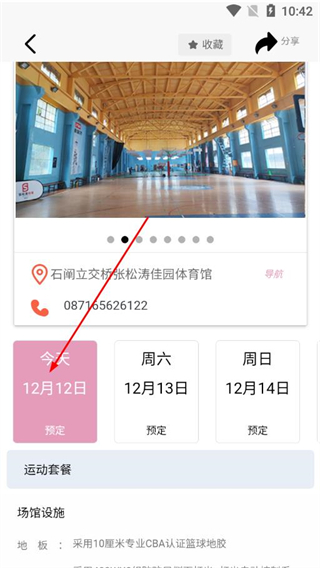 3、在场馆详情页选择预订日期,点击对应的预定,即可完成篮球场的预订操作。