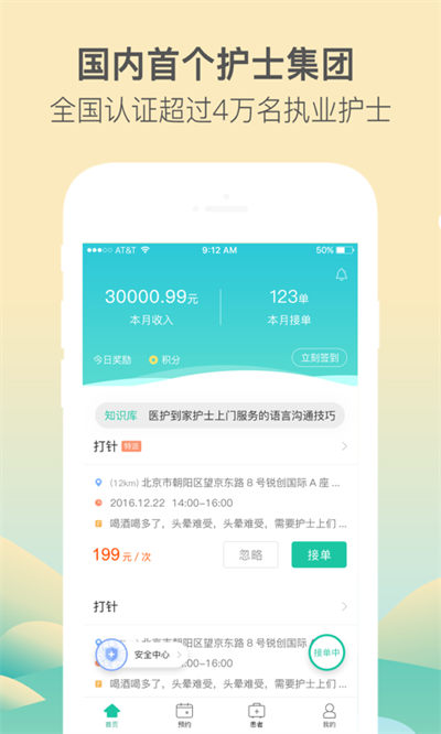 专业认证的注册护士,为附近患者提供上门打针或输液服务!