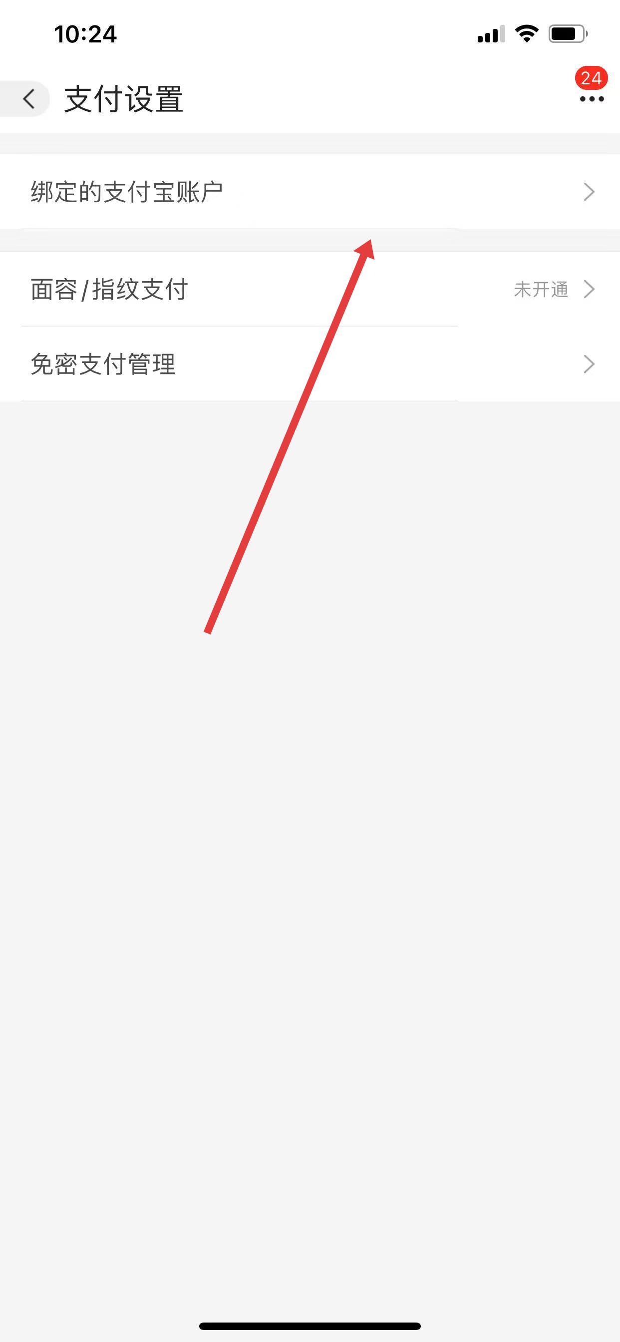 3、在支付设置界面里,点击绑定的支付宝账户 ,按照页面提示完成支付宝账户的绑定操作。