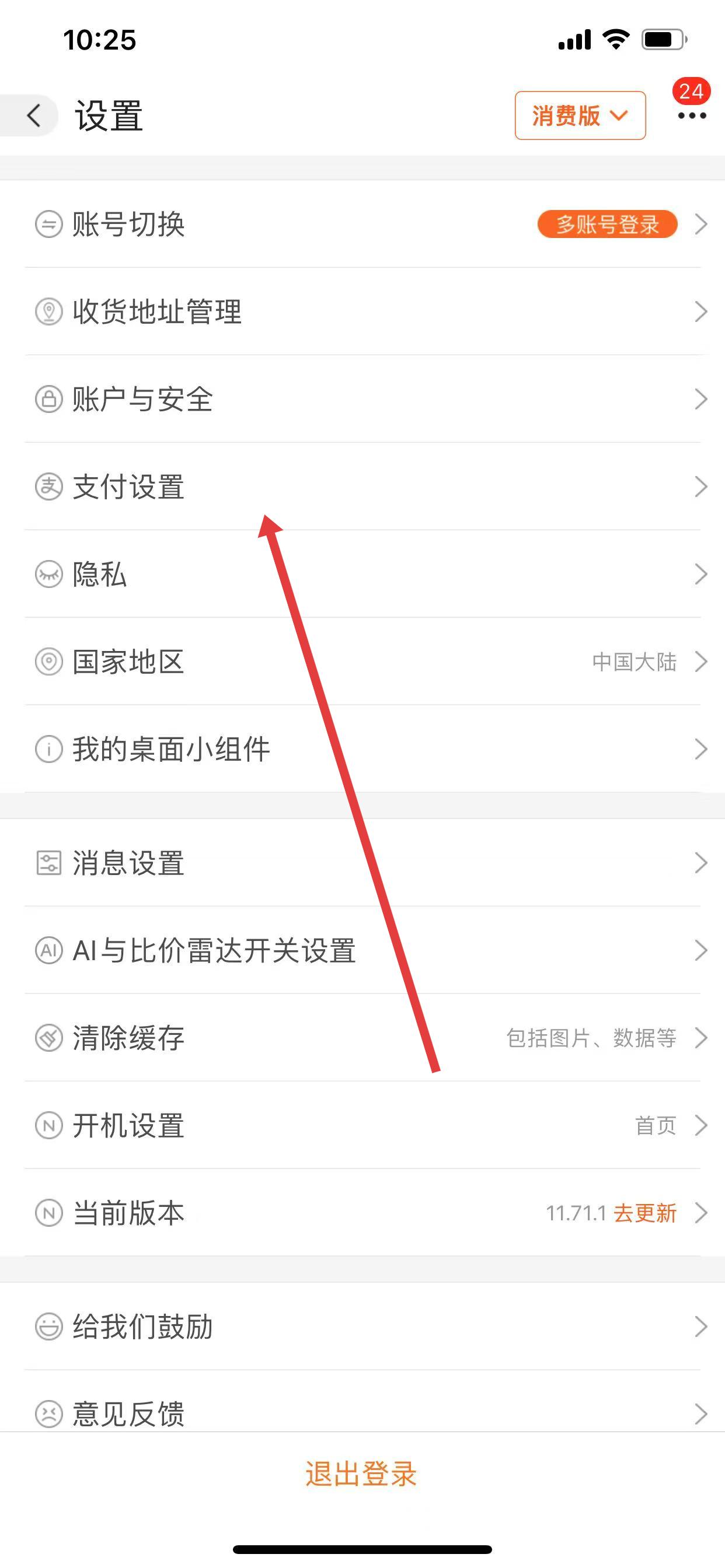 2、在设置页面中,点击支付设置选项 ,进入支付设置界面。