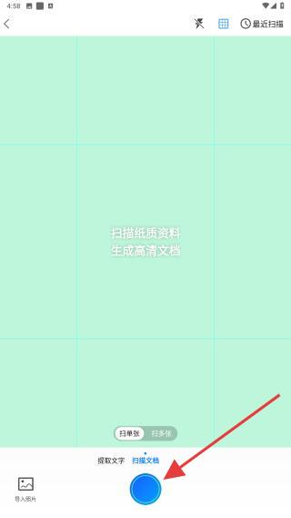 3、进入扫描界面后,进行扫描,点击底部蓝色拍摄按钮完成采集。