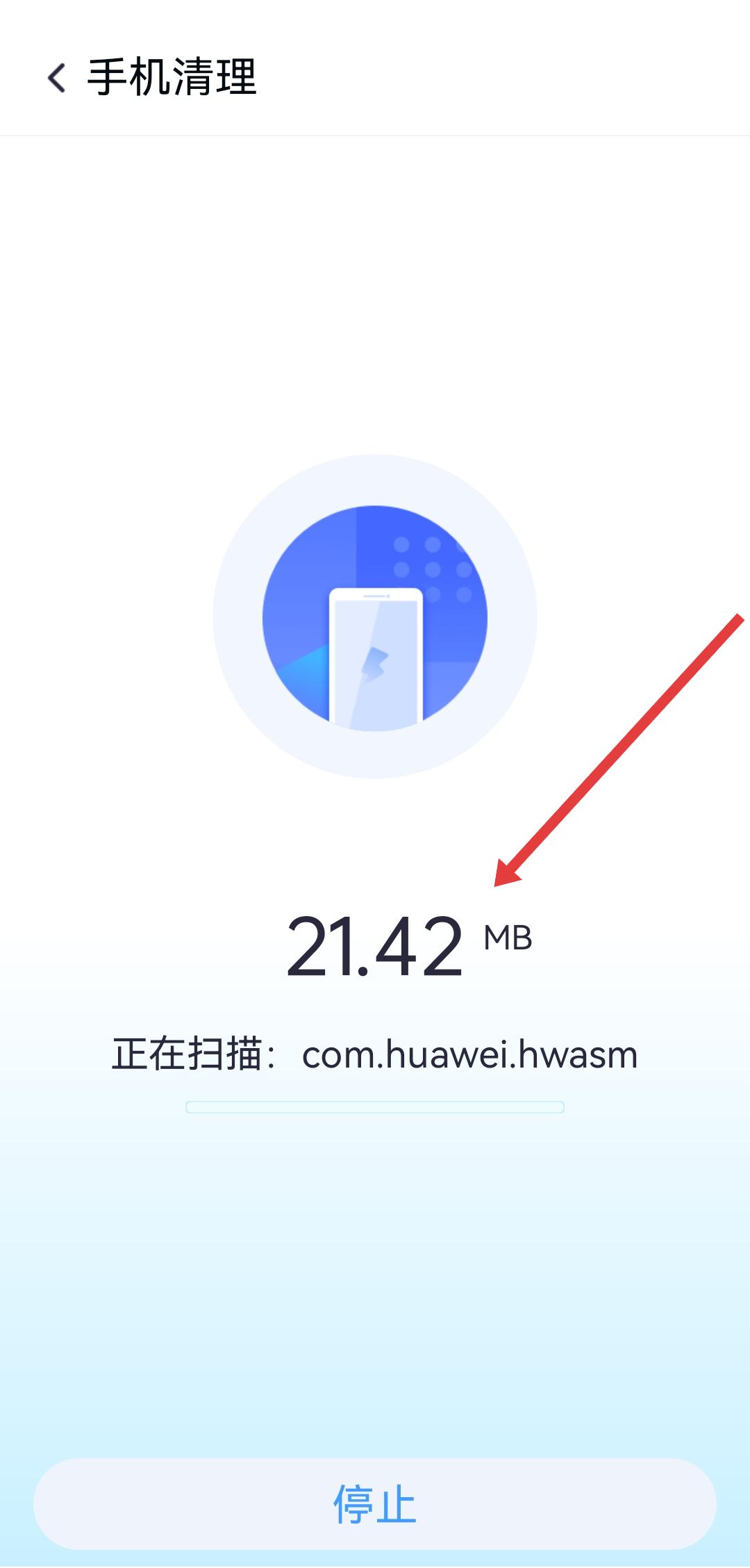 2、需要耐心等待系统自动扫描手机里的垃圾,当前的界面会显示正在扫描及实时的垃圾大小。