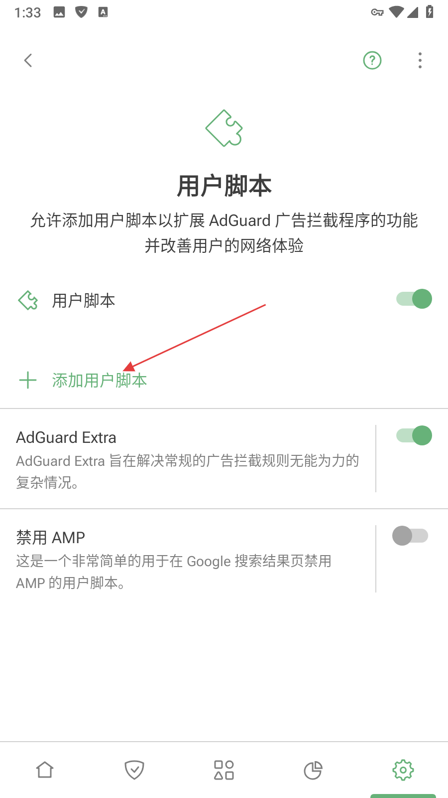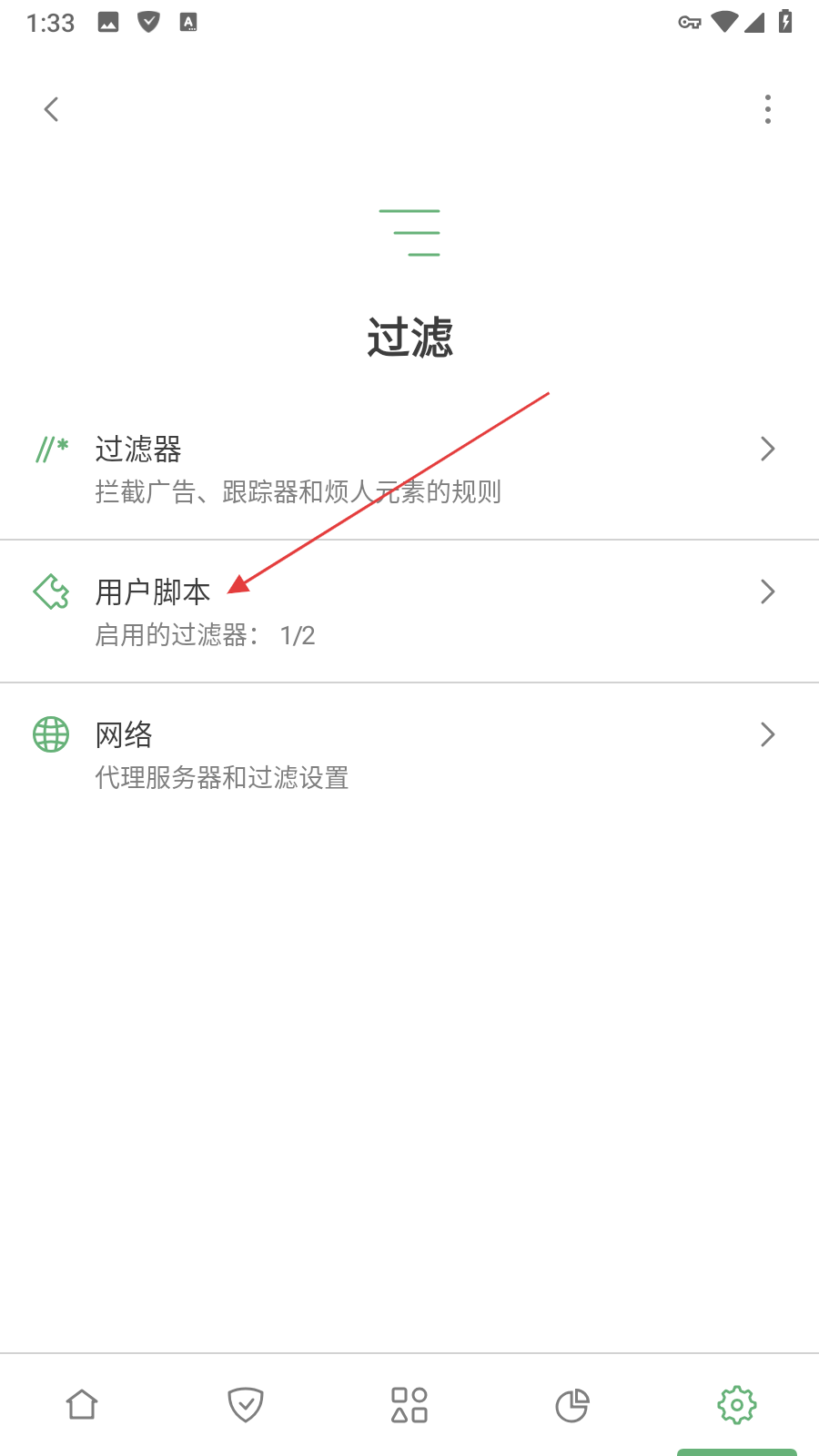 2、在过滤界面点击用户脚本选项,进入用户脚本设置页面。