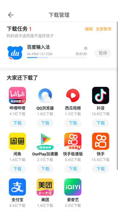 4、最后,找到【下载管理】可以了解到目前的下载进度,十分的直观。