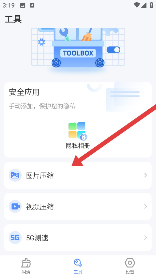 1、打开手机管家,进入工具页面后,点击图片压缩选项,进入选择图片界面。