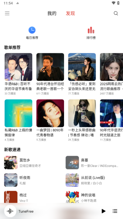tunefree音乐官方版是一款备受音乐爱好者青睐的免费开源播放器,以高颜值界面与强大功能著称。其设计简洁直观,支持网易云音乐账号扫码登录,可无缝同步个人歌单、收藏及云盘数据,实现跨平台无缝衔接。