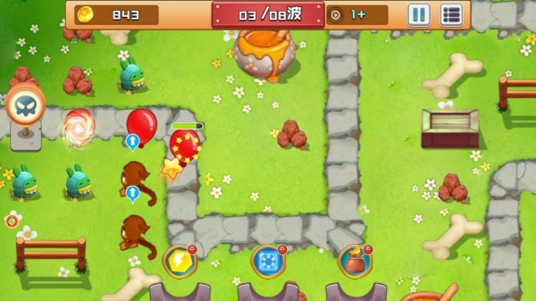 2、注意伤害类猴子和辅助类猴子搭配组合,拖慢气球飞行速度,让火力造成更为有效的伤害。