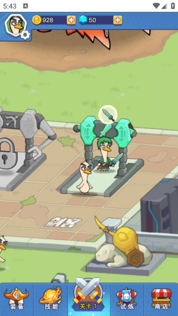 3、十分卡通的游戏题材,以大鹅为主要角色,打败来袭怪物。