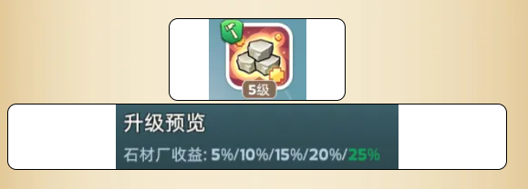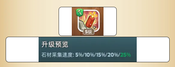 【巨石开采】则提升出征时的石材采集速度,是石料资源不可或缺的保障。