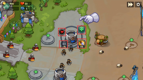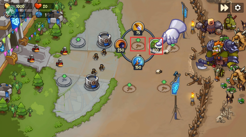 1、进入游戏后跟随引导,点击消耗100点资源建造防御塔,并将其放置在指定位置,迈出守卫王国的第一步。