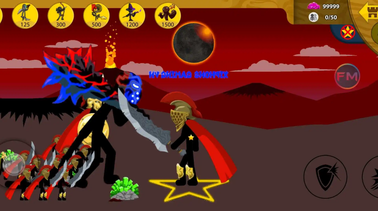 第十二关:最终对战,这时敌方用的是熔岩皮肤,十分强悍,前期两排剑士一排弓箭手,7个矿工发展经济(备上淘金热*3)后期养两巨人开路,两排弓箭手掩护,四排剑士拆雕像(备好剑士狂怒*2,一个拆雕像,一个防援兵),敌方雕像没血后会变出一个巨人(银甲大帝),这时赶紧撤退(防守模式),不要跟他硬刚,因为他伤害非常高。这时拿出对付巨人的套路,不过千万不要皮。打败他之后就会按照剧情发展,跟着剧情走就好了。