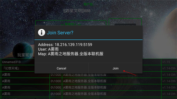 2、输入房间地址Ip可以直接加入游戏。