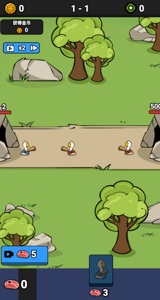 开局带着基础战力的鹅鹅站场,通过收集战场掉落的资源(比如左下角的肉块),就能解锁更强力的鹅型单位、升级武器;左右洞穴会刷新不同强度的敌人,你的目标是让鹅鹅的“战斗力滚雪球式暴涨”,从初期的小打小闹,一路碾压到“顺利通关”!游戏节奏轻快,单手就能操作,看着鹅鹅从弱到强、轻松横扫关卡,解压又有成就感~