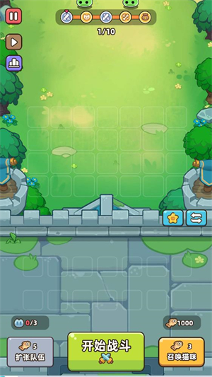 2、进入关卡后点击右下角的按钮可以召唤不同的猫咪角色。