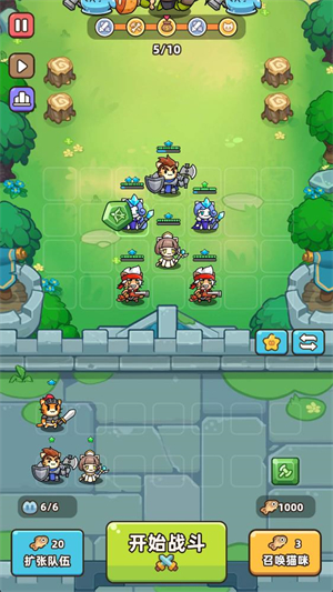 3、召唤完毕后点击开始战斗角色会自动攻击出现的敌人,击败敌人后就可以获得胜利。