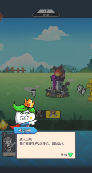 2、当敌人出现的时候,你要生产出2名步兵,然后派遣步兵去消灭敌人。