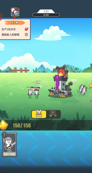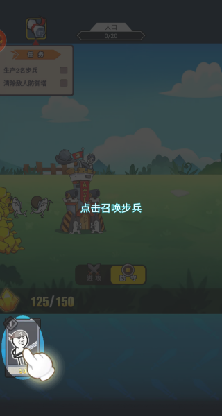 3、点击召唤步兵,去与敌人开启作战,清楚敌人的防御塔,你就可以获得胜利。
