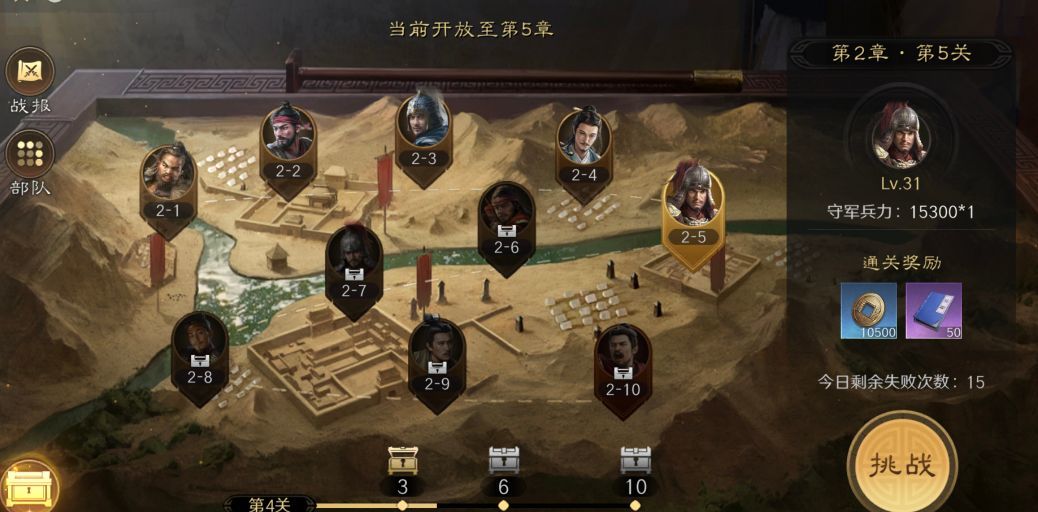 军演挑战(每日15次)铜币主要获取途径,建议先提升武将等级再挑战