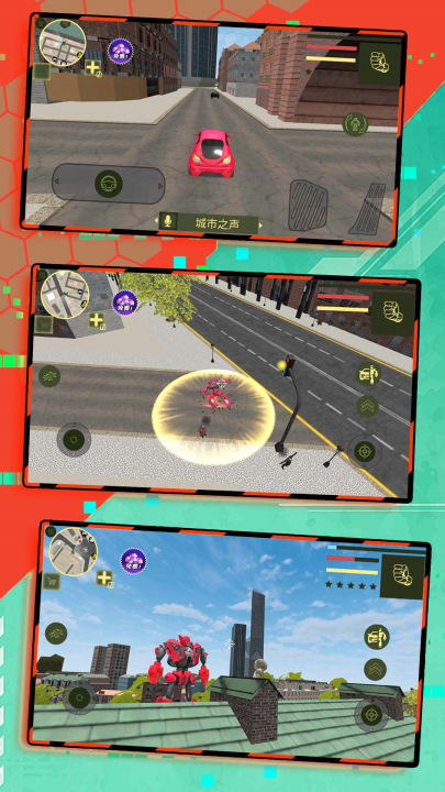 动作格斗小小城市英雄机甲游戏