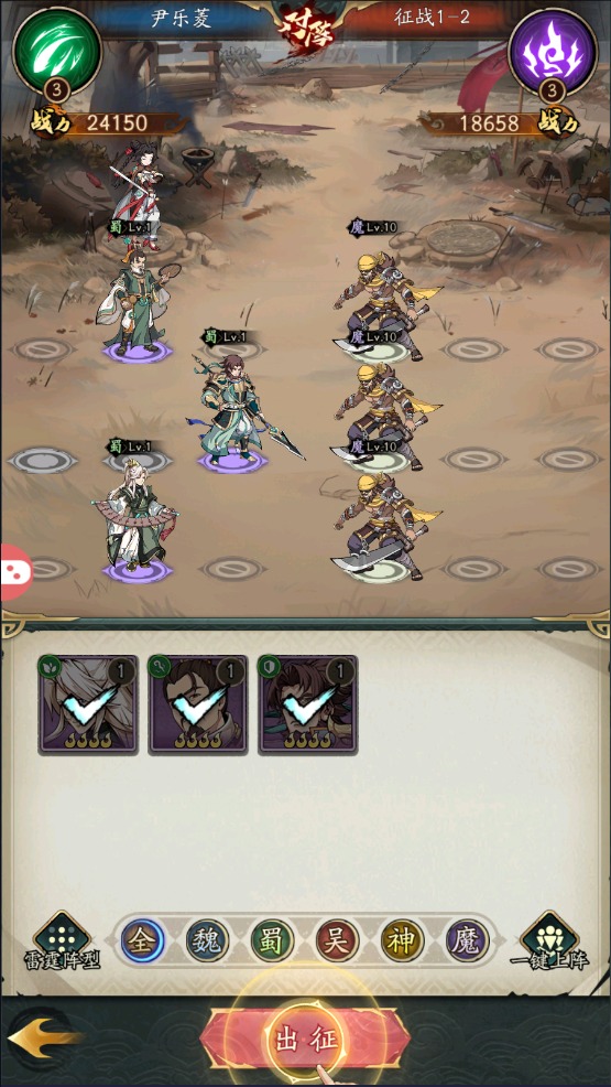 4、正式进入战斗环节,操控三国武将展开卡牌对决,合理搭配阵容,发挥最大战斗力。