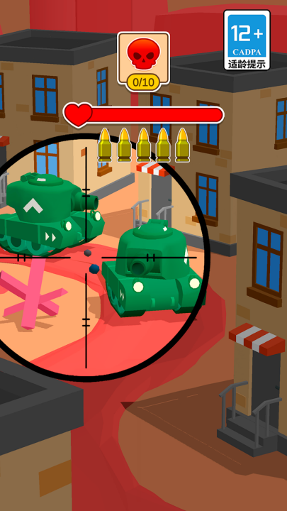 1、游戏玩法:玩家通过滑动屏幕控制坦克的攻击方向,在躲避敌方攻击的同时,精准打击敌人。要求玩家巧妙安排攻击顺序,避免误伤。