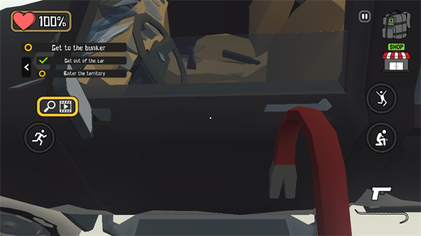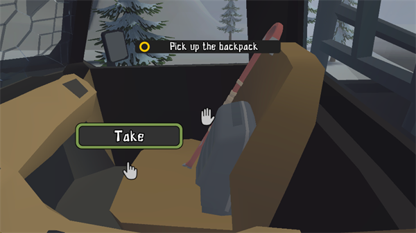 1、进入24号地堡游戏(Bunker 24安装器)结束剧情,撞车后,视角向右移动,随后点击“Take”,拾取背包和撬棍。