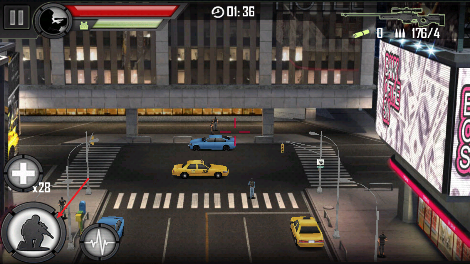 2、瞄准过程中,准心会小幅度的移动,点击下方心电图按钮可以短暂的稳定下来,随后进行射击会更加准确。
