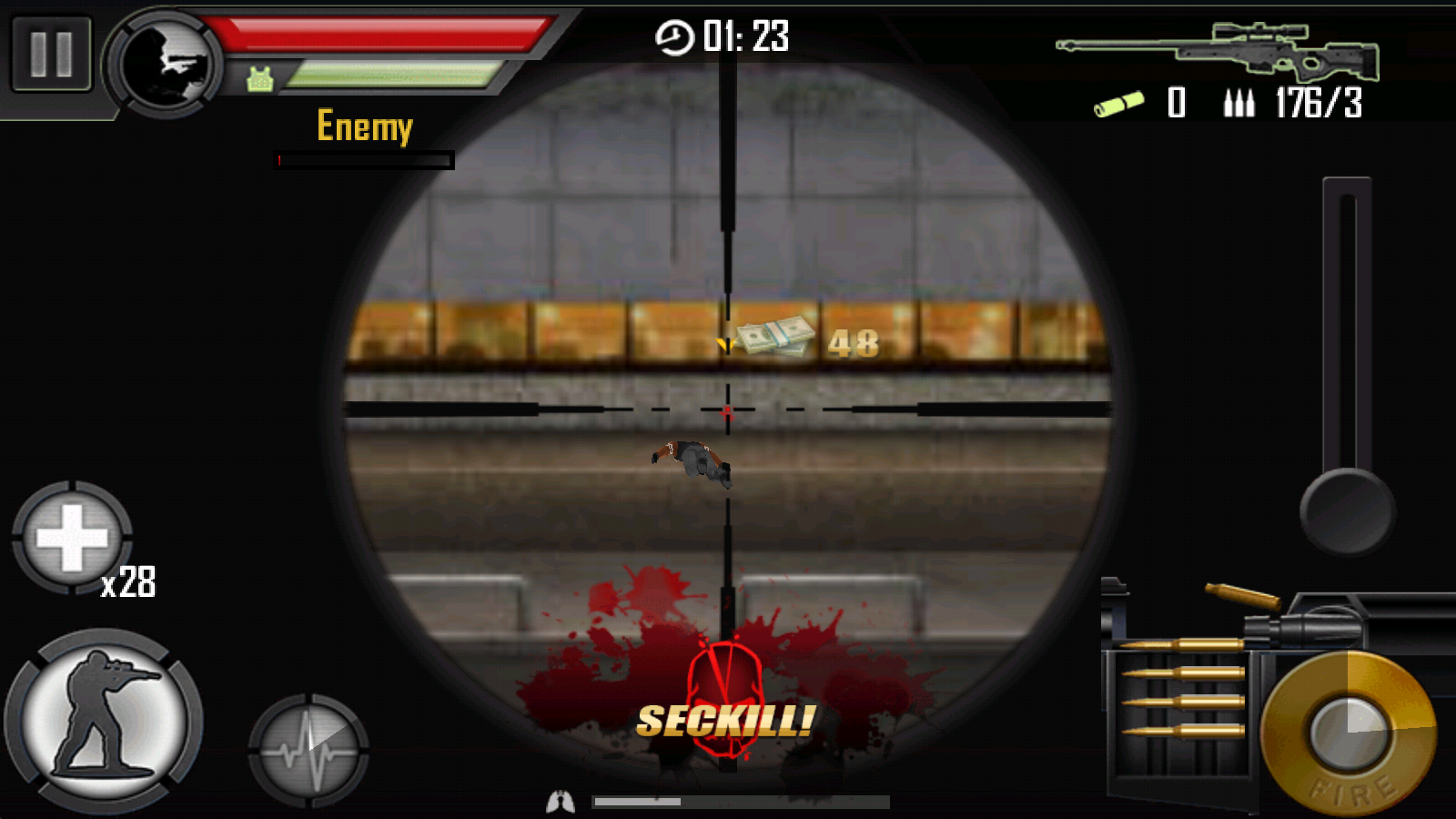 《摩登狙击手 Modern Sniper》是一款好玩刺激的第一人称射击游戏。唯有在险境之中,才能点燃战斗的激情!在《摩登狙击手版》中你是一名摩登狙击手,从任何角度来讲都是精英中的精英,你游走在现代社会的阴暗边缘,随时准备面对各种危险的枪战与暗杀事件,展现你的精湛枪法,从容面对每一项任务的挑战。快,现在就拿起你的狙击枪,打爆敌人的脑袋。