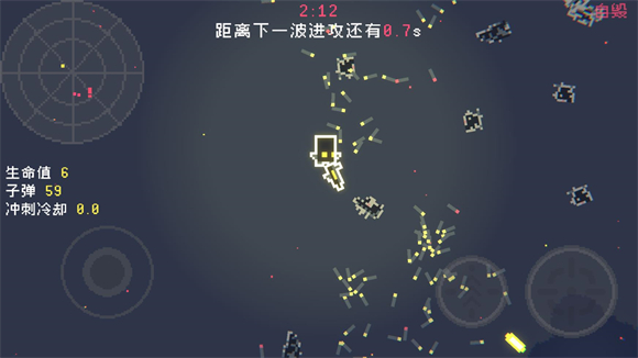 2、正式开始后左边控制角色的移动,右边是闪避和射击。