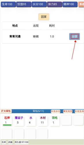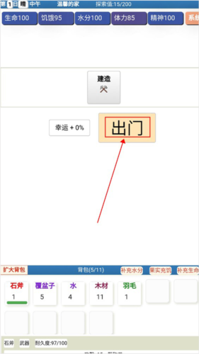 1、进入游戏之后,玩家可以点击“出门”,探索收集物资。