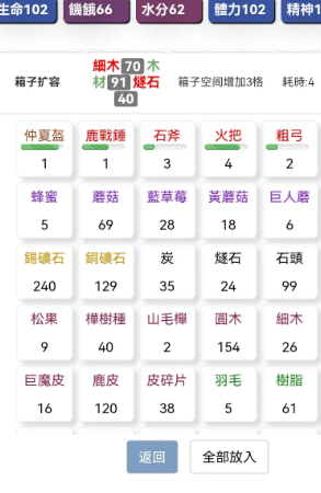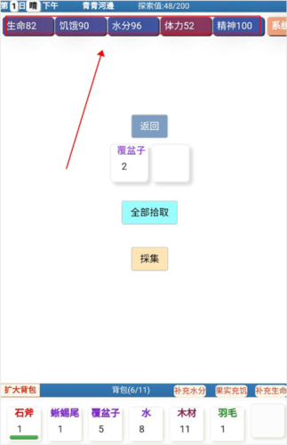4、玩家在收集物资时要注意自己的体力,在体力不足的时候千万不能狩猎,否则会被打死,体力耗尽就需要回家补充。