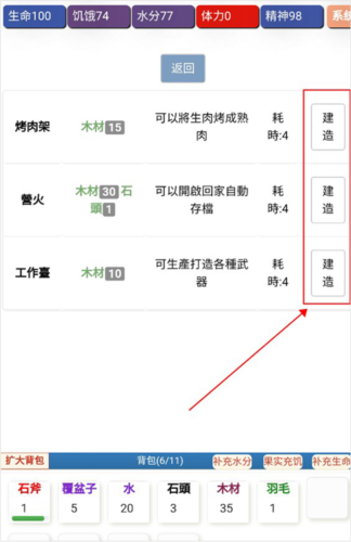 6、玩家有足够的资源也可以制作烤肉架。篝火等设施,让自己的家园更完善。