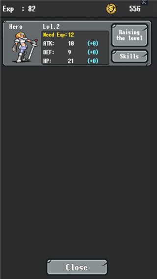 2、升级:战斗后会获得经营,可以提升勇者等级