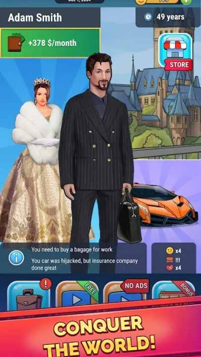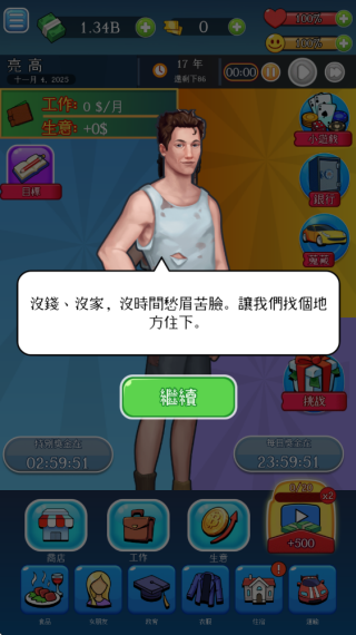 在这个无所事事的生活模拟器中,你必须从一个可怜的失业者的底层开始。为了生存而忙碌,找一些低级的工作来赚钱买食物。然后爬上职业阶梯,在生活模拟器中走自己从穷到富的道路。为您的模拟人生做出正确的选择,如果您想成为银行并成为亿万富翁,否则您的模拟人生最终会在街上挨饿。它教你在现实世界中可以做出的选择。