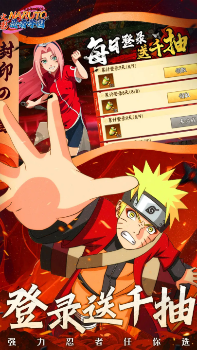 5、连续登录送稀有忍者,7天登录送迈特凯!