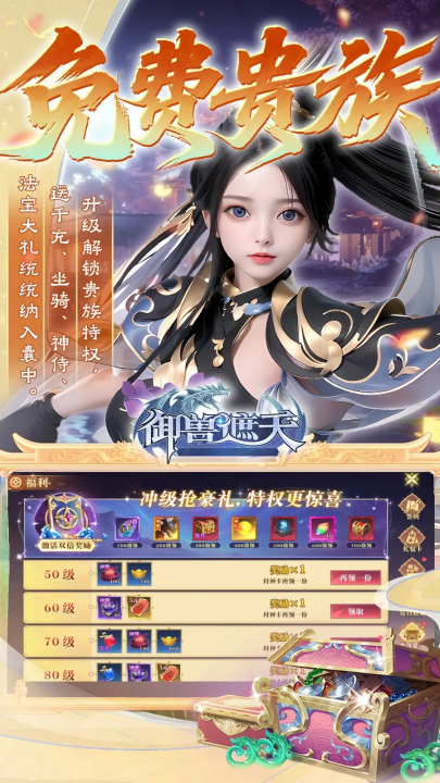 6、冲级豪礼:提升等级领取豪礼,神侍、坐骑、法宝免费领领领,特权奖励超级加倍。