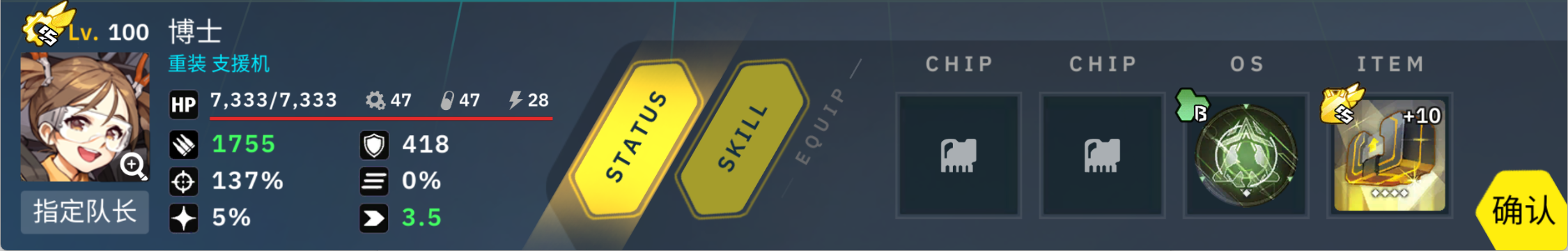 最后提供正常加点思路,通行证免费送了限时30天的无限洗点buff,可以随意更改加点(不确定下个月通行证是否续时长)。盾t点防御和血,芯片防御;闪t全点闪避,芯片闪避;红莲点命中,芯片行动力;海星和粉毛都是保证吃满队友增益可以满暴的前提下,看情况点命中和攻击(根据怪物闪避调整命中),海星暴击芯片,粉毛攻击芯片。