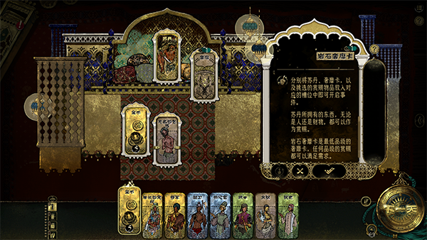 每一轮游戏,根据抽到的苏丹卡顺序,都会有完全不同的游戏体验,并且无论胜败,都可以获得积分,强化下一轮游戏的资源,解锁强大,具有特殊功能的盟友、装备,构筑自己的游戏流派。通过对资源与故事机遇的合理运用,游戏存在多种解决问题的流派,也对应了多种不同的结局。