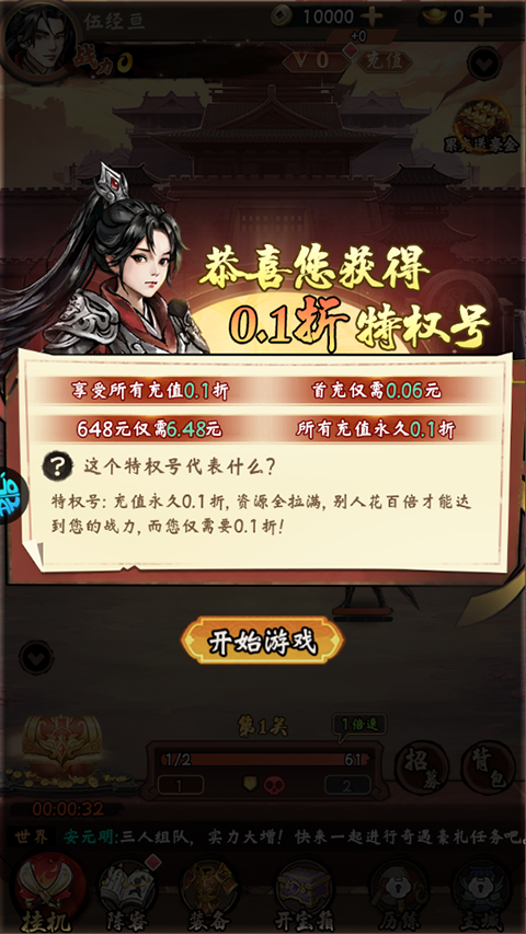 5、游戏内所有充值档位,全部0.1折,跌破低价版本。