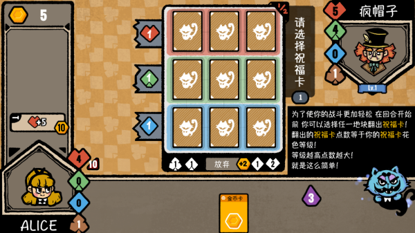 4、虽然说也有着道具卡可以帮助玩家获得额外的行动,但我觉得这更适用于前期,后边血量不足的情况下很难翻盘了。