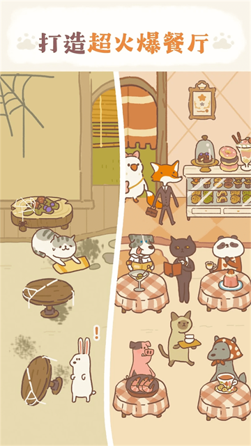 卡通餐厅模拟游戏是一款治愈系餐厅模拟经营游戏,玩家帮助小猫们经营餐厅,制作多样美食满足顾客需求,赚取金币扩大店铺。画风可爱操作轻松,体验温馨又充满成就感的喵星人创业之旅。喜欢这款游戏的朋友可千万不要错过了,快来下载试试吧!