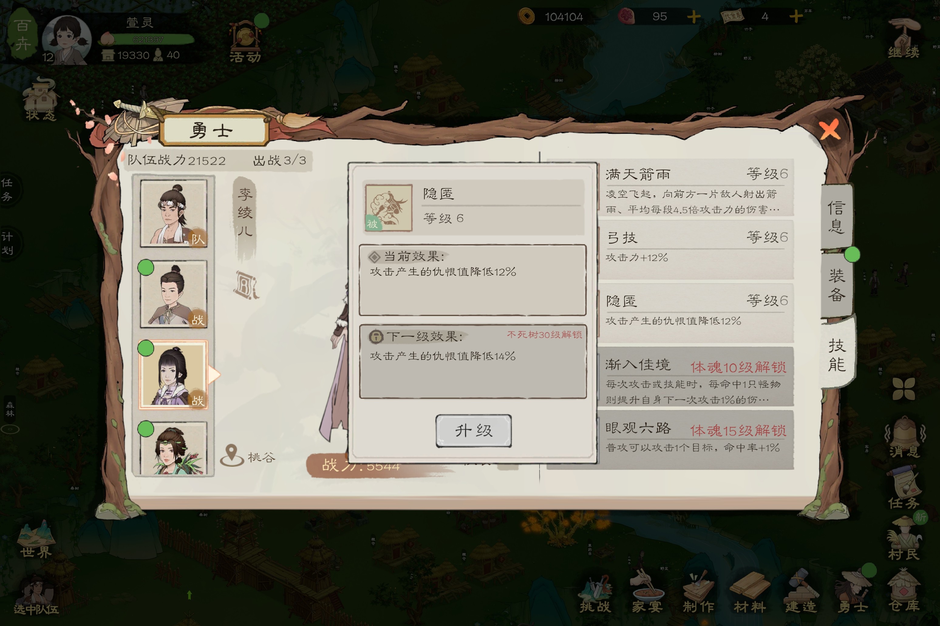 勇士与村民定位不同,擅长战斗,但是不擅长劳作,主要负责击败野兽、应对兽潮,保卫山谷的安全。
