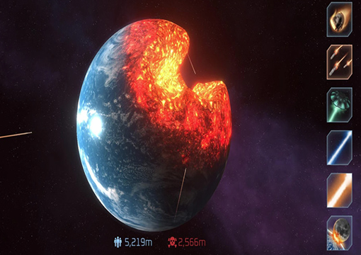7、来将星球毁灭。感受滚烫的熔岩,以及变形的星球。通过卫星的视角,来观看星球毁灭的壮阔画面。