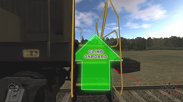 4、通过移动左侧的箭头移动游戏视角。点击右侧的箭头移动到楼梯位置就可以进到火车车厢内了。