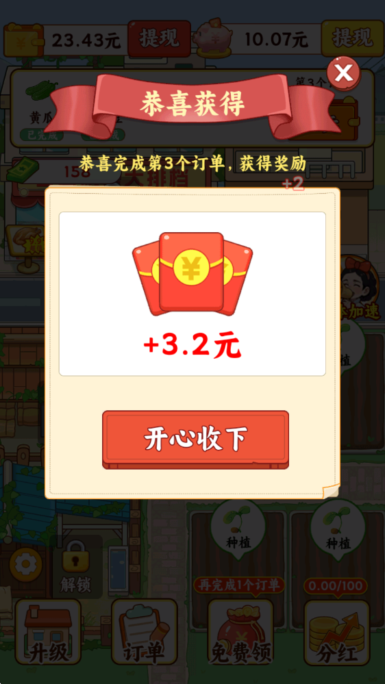 2、丰富多样的订单等着你去完成,每一笔订单都准备了丰厚的奖励,只需通过种植即可完成,赢得海量奖励。