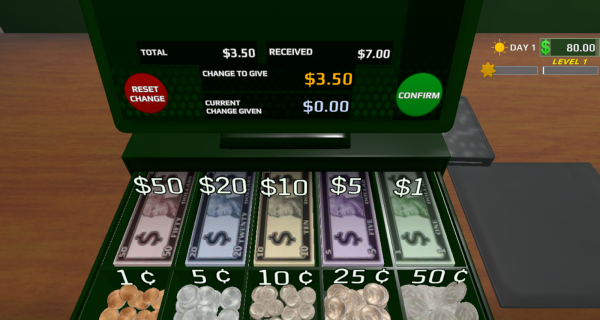 3、在收银系统输入收款金额后,需从钱箱选择正确面额的硬币和纸币进行找零。