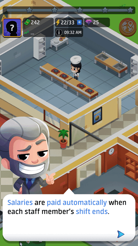 4、别忘了,厨师和所有其他工作人员都需要付钱!每个工作人员的轮班结束时,工资自动发放。