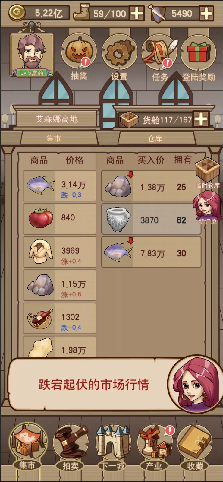 玩家可在多个城市中穿梭,通过低买高卖的方式积累财富,物价浮动真实,考验玩家的市场判断力。