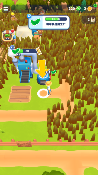 1、进入游戏,可以观察上方的任务,去完成任务,维修干草工厂,赚取钱币;